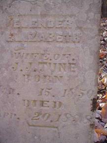 Elender Elizabeth; b. 15 Jan 1850, d. 20 Apr 1898, wife of J.J. Tune